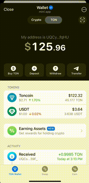 To enter the lottery, simply send 1 TON (or 2, 3, 4, etc. TONs) to the contract address